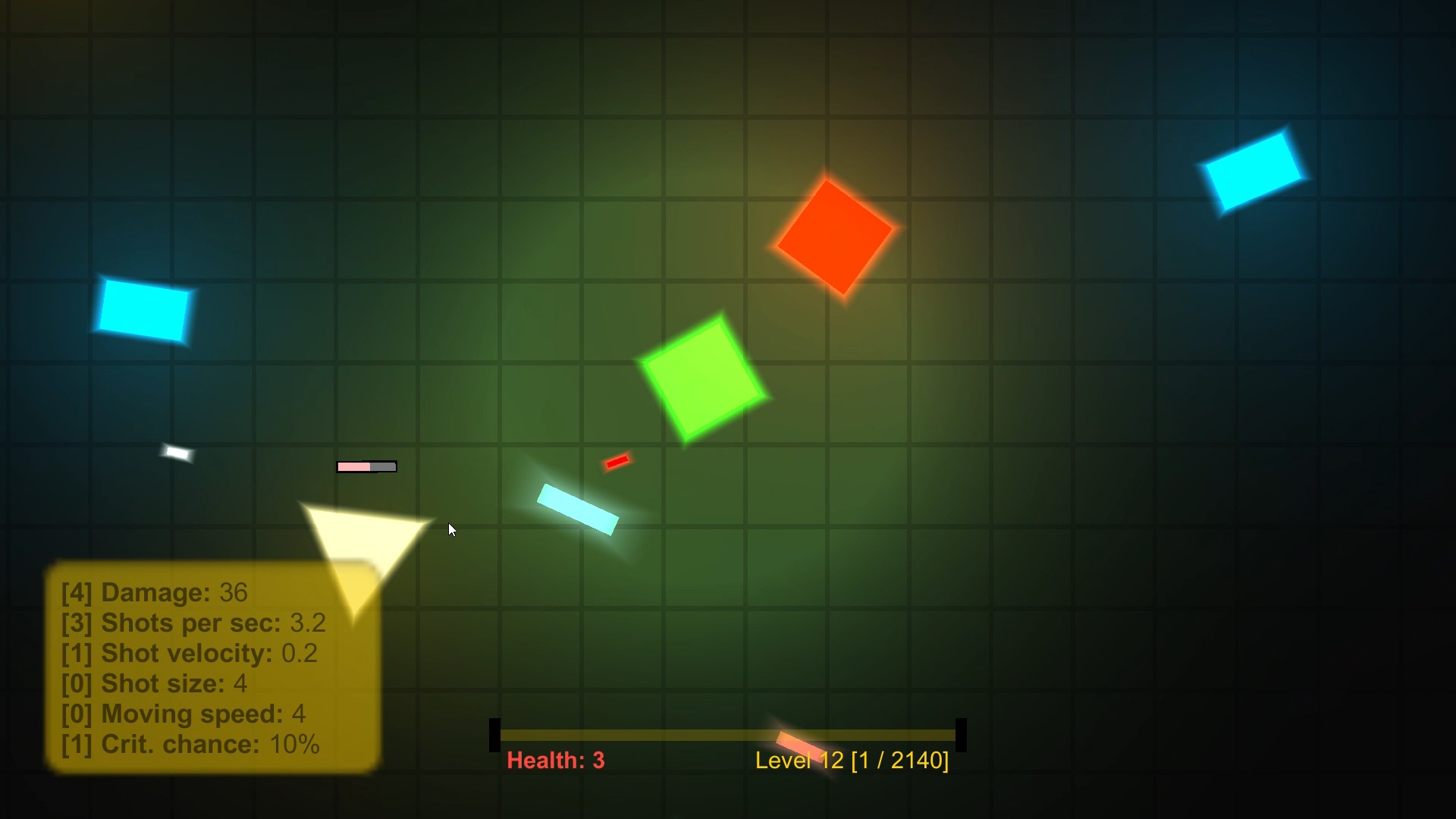 POPIS: Top down akční střílečka obohacená o světelné neonové efekty. Za úkol máte ničit nepřátele a získávat zkušenosti a za ně potom úrovně. Každá úroveň představuje jedno vylepšení pro postavu hráče.